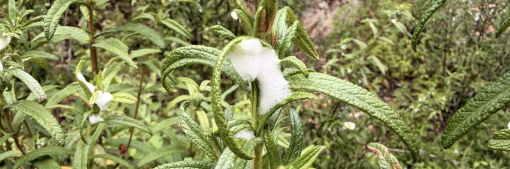An zahlreichen Pflanzen der Macchia, auf Rosmarin, Lavendel, Zistrosen, Gräsern usw. zeigen sich im Frühjahr (März - Mai) unzählige schneeweiße schaumige Ablagerungen, die auf den ersten Blick unscheinbar wirken..