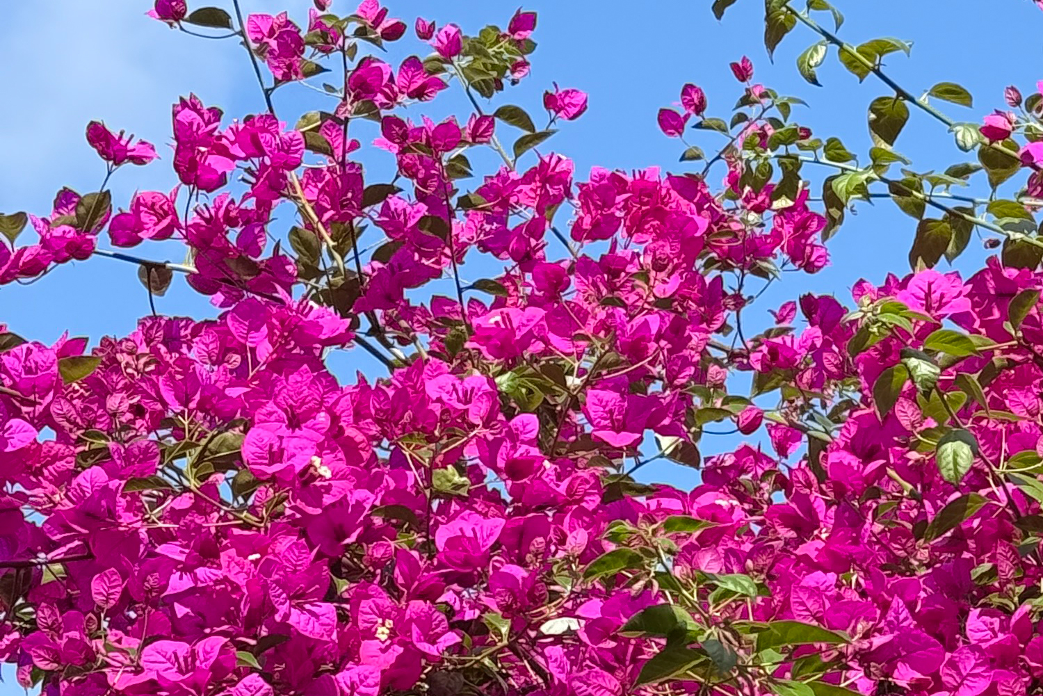 Oleander blüht nun überall in voller Pracht. Seine Blüten in Rosa, Weiß oder Rot säumen Straßen, Flussläufe und Gärten. Auch die Bougainvillea zeigt sich jetzt von ihrer spektakulärsten Seite. Ihre intensiven Farben – von Magenta über Violett bis Orange – schmücken Hauswände, Pergolen und Innenhöfe.